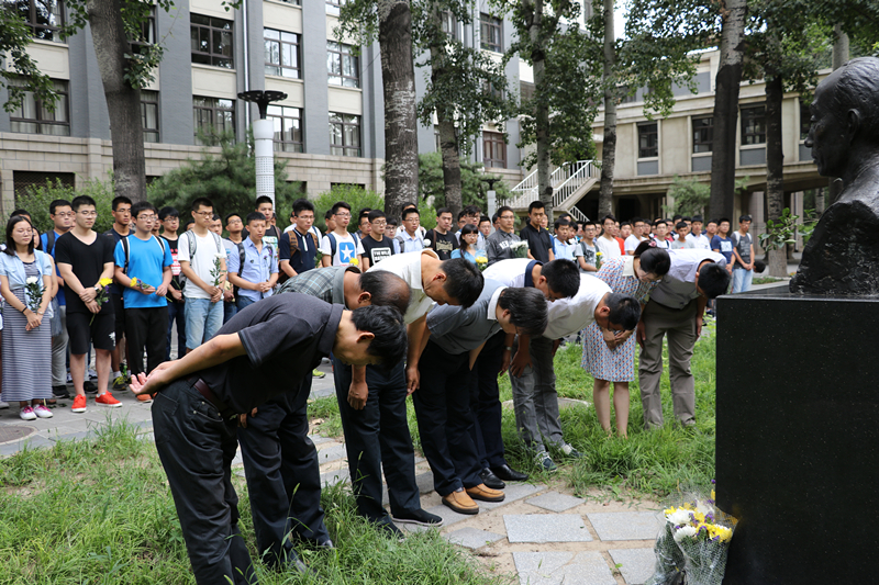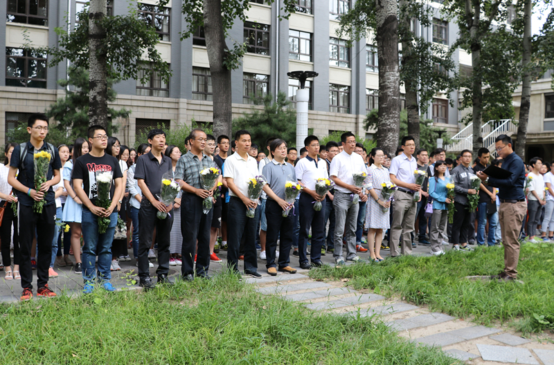 2016年9月1日,金沙集团官网全体2016级研究生新生聚集在杨为民老师的塑像前,深情缅怀这位开拓创新的学科带头人、敬业奉献的学院奠基者、朴素廉洁的共产党员。院长王自力教授,党委书记赵廷弟教授,副院长刘斌教授、曾声奎教授、王维副教授,党委副书记章文晋教授、党政办主任刘清洁老师、可靠性与环境工程技术重点实验室支部书记、副主任李晓阳副教授与全体16级研究生一起向杨为民老师的塑像献上鲜花,表达深切缅怀。专职辅导员,代理分团委书记邵英华主持献花仪式。