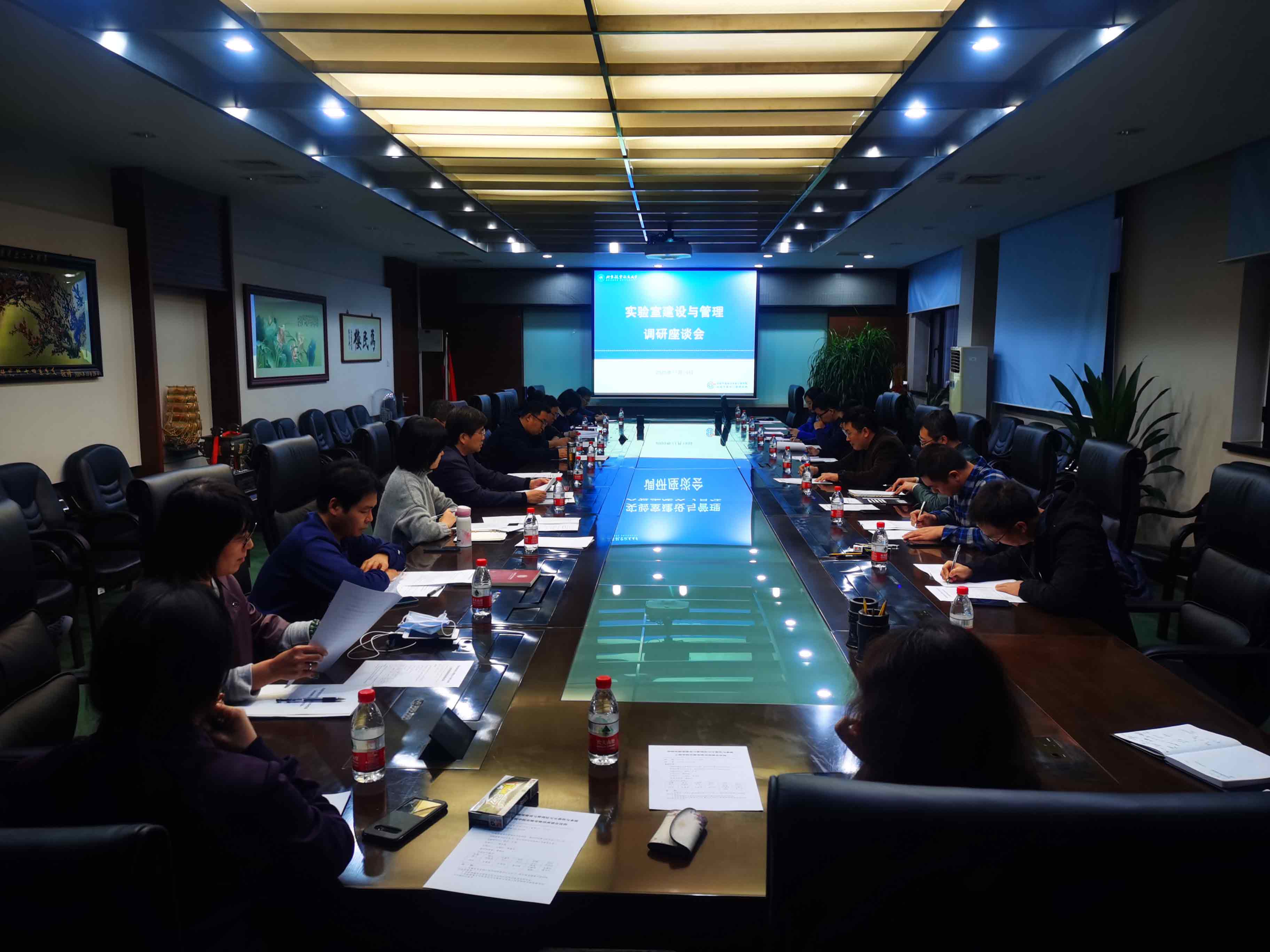 2020年11月19日下午,实验室建设与管理处处长刘刚、副处长徐震等一行六人来金沙集团官网就实验室的建设与管理有关工作进行座谈,学院党委书记王自力、院长林京以及实验室负责人和实验系列教师代表等共20余人参加本次座谈会。会上,王自力书记与林京院长先后就金沙集团官网各类实验室的历史发展与现状进行介绍,刘刚处长就近期学校实验室建设与管理的工作重点进行说明。随后,与会成员就教师们关心的实验岗职称相关问题进行了热烈交流讨论。