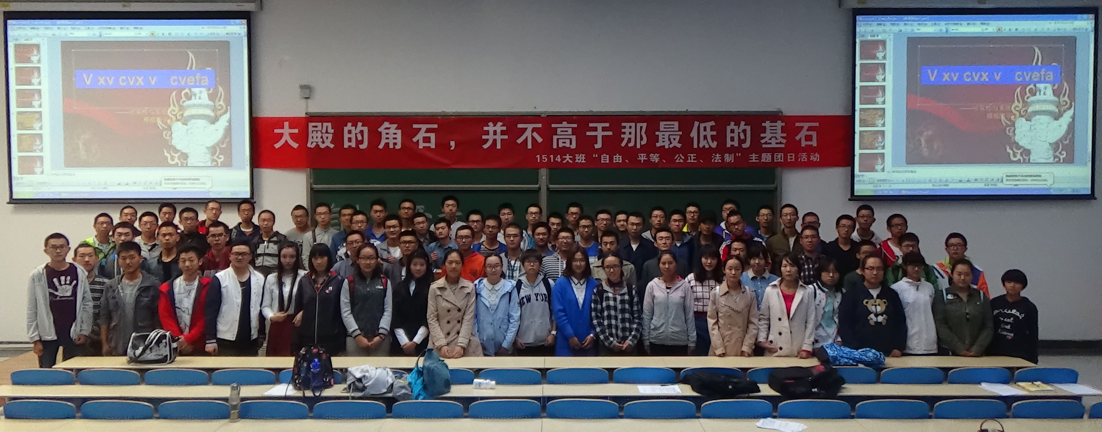 2015年9月27日至10月13日,金沙集团3354cm本科2015级顺利举行以“自由,平等,公正,法制”为主题的团日活动。此次活动由1514团支部组织,全系同学参与,通过采访与模拟陪审团活动两种形式展开。