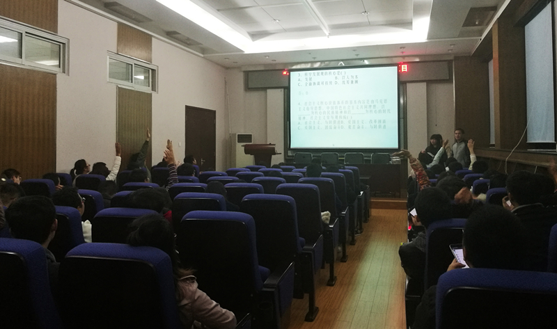 影片结束后,会议进入社会主义核心价值观知识竞赛环节。竞赛分别以必答以及抢答的类型进行,两个班七个小组争相竞答,纷纷表达自己对社会主义核心价值观的看法和理解,最终ZY16142班一组以最高分夺得冠军。