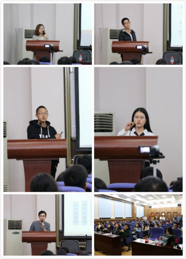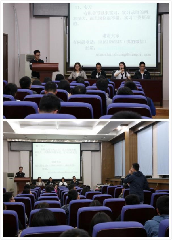 晚7点半,交流会准时开始,由樊冬明辅导员主持会议。会议开始,任福纯辅导员简要分析14级研究生的就业情况,整体而言,一线城市就业岗位数减少,升学学生数增多,一些二线城市有更大的吸引力。紧接着,师兄师姐生动讲述他们的求职经验,并联系求职过程中的优势劣势给予相关建议。随后是现场答疑时间,几位师兄师姐就同学们比较关心的问题进行了详细解答,告诫大家用心做好实验项目与学术研究。
