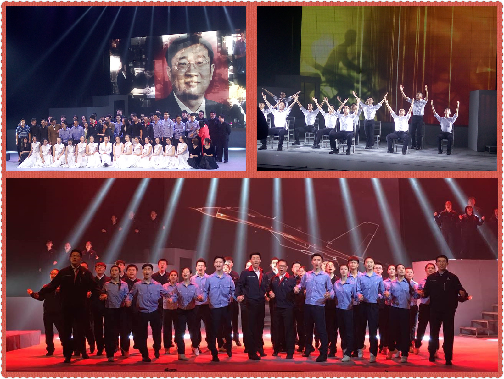 第一幕从罗阳梦想的起点——北航的青春岁月开始,描写了罗阳曾经的大学生活。一段段书写青春的对话、舞蹈、歌声,和“恰同学少年”的梦交织在一起,一幕幕场景展现了罗阳同志内心的航空报国情怀的萌发以及最终为国奉献的决心。同样身处校园的我们,在梦开始地方,也应像罗阳同志一样,胸怀大志,立志为祖国航空航天事业不懈奋斗!第二幕的演出,展示了罗阳与妻子之间相互扶持的深厚感情以及与同事之间战友般的友谊,表现了罗阳同志对航空事业的坚守和攻坚克难、百折不挠的奋斗意志;对辽宁舰上惊心动魄的八天七夜的演绎,更歌颂了他为推动中国航空工业实现跨越发展而付出的心血,生动展现了罗阳同志以“杰出的国防科技工作者”、“模范的党员领导干部”、“优秀的企业家”为特质的璀璨人生。