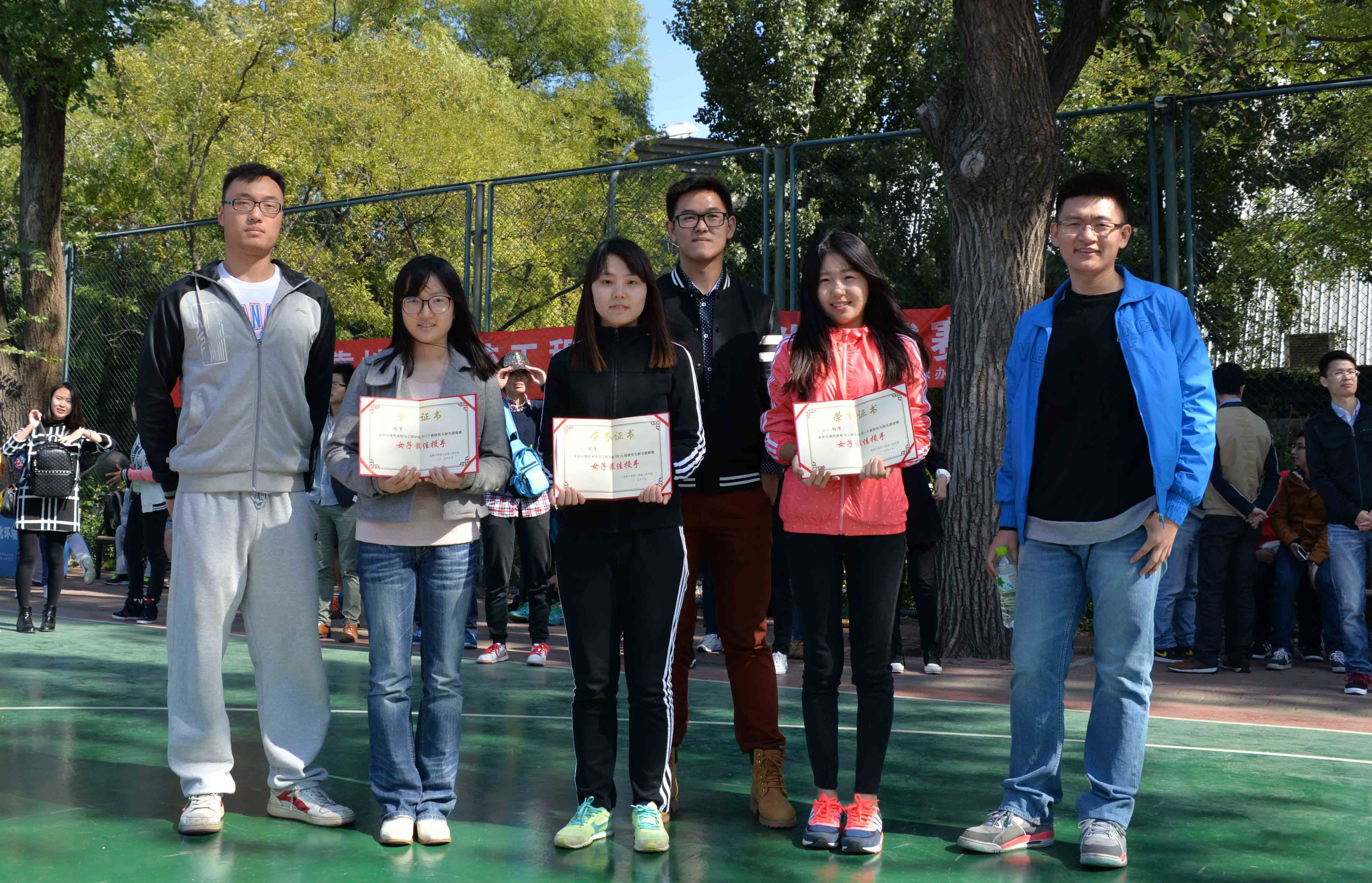10月11日,金沙集团3354cm2015级硕士研究生新生篮球赛圆满落下帷幕,学院2014级研究生辅导员任福纯,2015级研究生辅导员樊冬明出席并为获奖队伍颁奖。本届篮球赛由金沙集团官网研究生会主办,文体部承办,宣传部协办。本次比赛于10月9日开幕,历时3天,得到了广大师生的关注和参与。