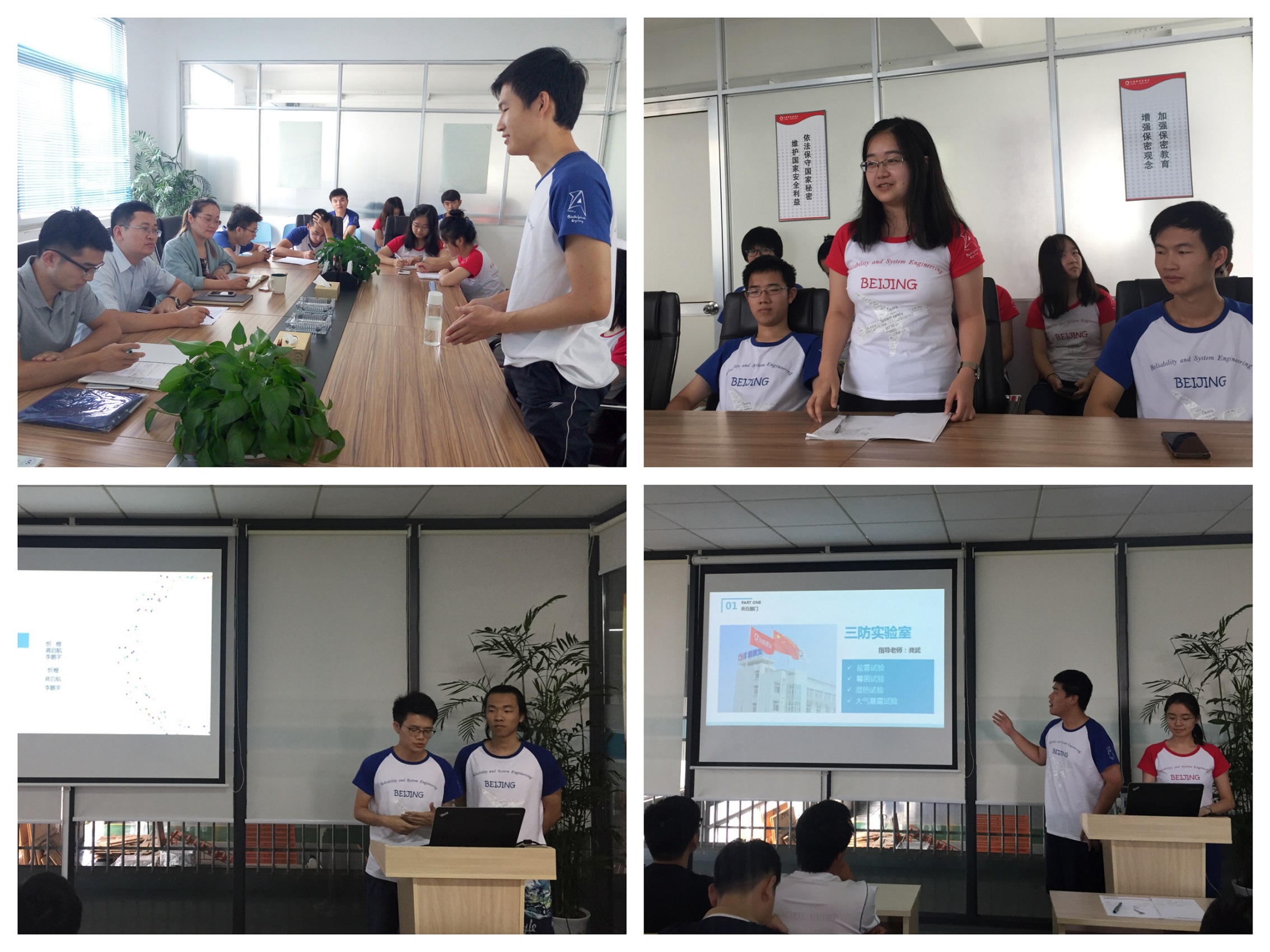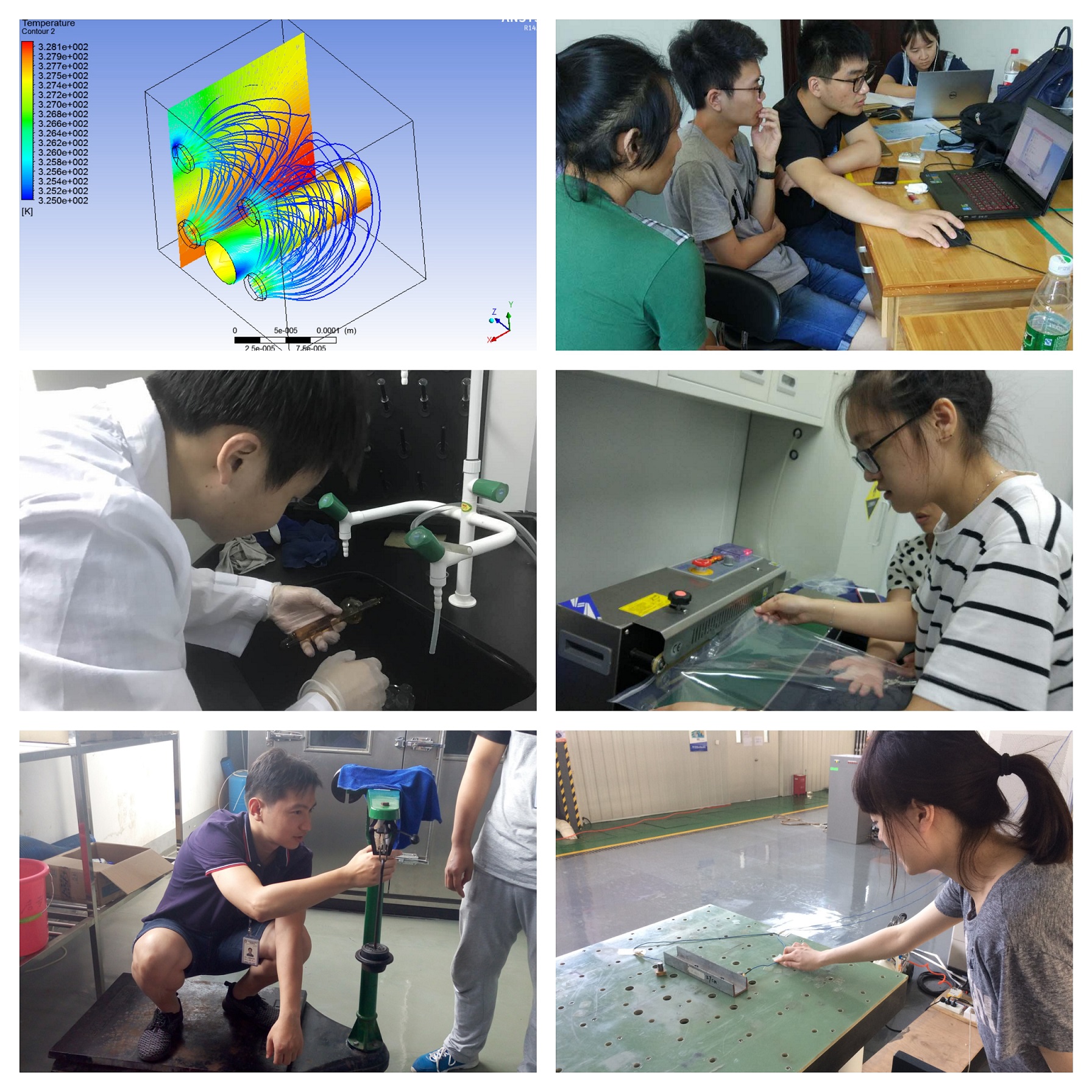 随后的七天里,同学们被分组安排到可靠性环境实验室、三防实验室、失效分析实验室、环保事业部、设备开发部和科研军工事业部等6个部门进行深入的实地操作实习,实习单位也给每个小组同学分配了实习指导老师。实习期间,同学们学习和完成了环境试验大纲的编写、综合试验台操作、霉菌盐雾实验的流程、ANSYS热仿真、元器件失效分析、加速寿命试验数据处理等工作,极大地提升了对于专业知识的认识和实际运用能力。