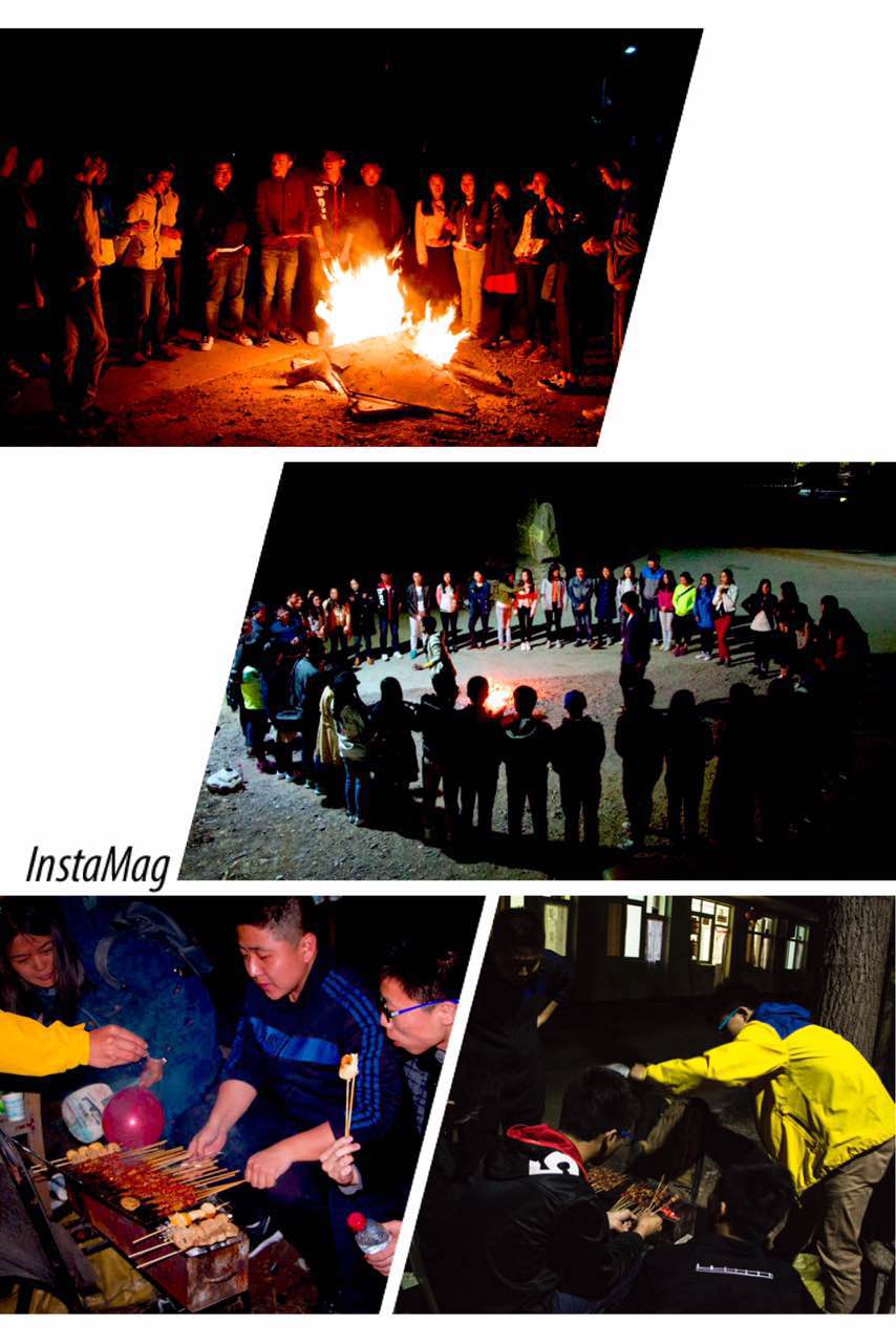 4月9日下午七时,所有成员到达实践交流活动第一站——清凉谷住所。为了促进两个学校间同学之间更快的认识、熟悉,党团支部之间的相互了解,所有成员相互合作,共同完成了烧烤环节。之后准备了篝火晚会,各位委员精心设计了许多小游戏,气氛格外热列。
