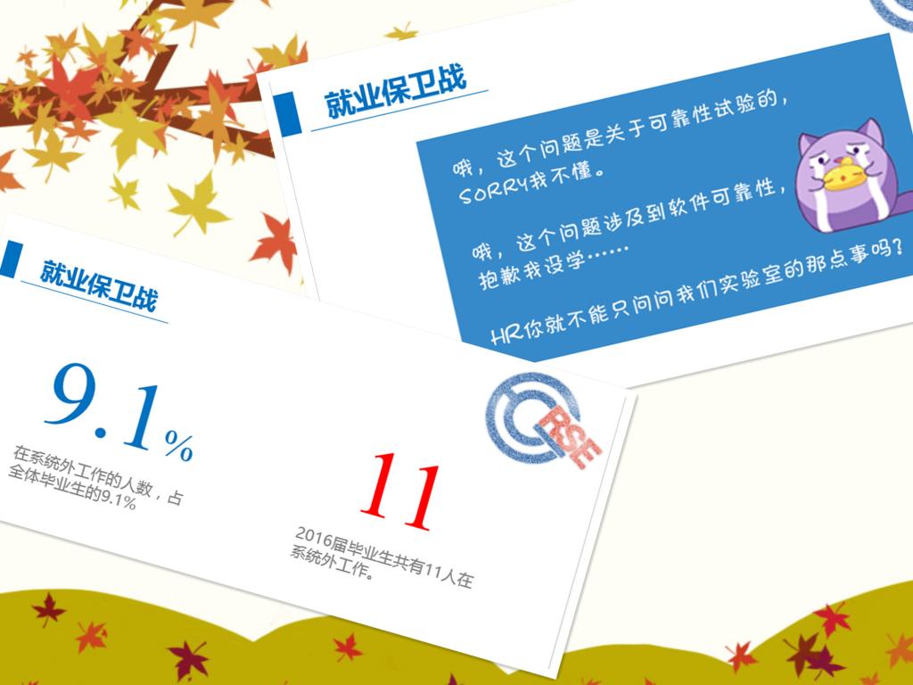 就业问题始终是同学们所关心的重中之重。在班会的“就业保卫战”板块中,展示了近几年应届毕业生的就业情况,这让同学们把现实与梦想更好地结合起来,梦想也在各自的脑海中更加清晰。同学们也畅所欲言,交流了各自对于就业的看法。针对本专业研究生在就业后出现知识面窄的问题,大班会也做出了相应的对策,即通过学术交流研讨互相了解,拓宽视野,增加知识面,为未来的工作奠定基础。
