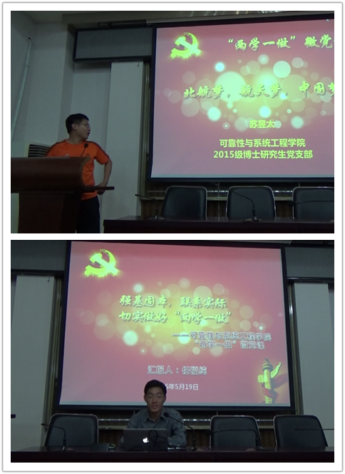 本次比赛采取“我为党代言”演讲比赛的形式开展,以本硕博联动、优秀教员带动、全体党员互动的方式,将“两学一做”学习教育落实到支部和党员,增强了党课的吸引力和感染力。学院本科生、硕士研究生和博士研究生党支部在前期支部内“两学一做”学习的基础上,推选出对党章党规和系列讲话有深刻理解的党员为支部微党课优秀教员参加微党课大赛。本次大赛中的微党课主要围绕“系列讲话中的中国梦和航天梦”开展,参赛选手以“中国梦、航天梦、可靠梦”、“学习两学一做,筑梦可靠未来”和“砥砺前行,不变航天强国心”等为主题进行深入阐述,参赛作品观点新颖、以小见大、入情入理、表达生动,课程讲授中北航优秀校友先进事迹、中国深空探测计划和可靠性事业的发展等生动的事例极具感染力和说服力,引起听众强烈共鸣。赛后,学院辅导员对本次比赛进行了总结,并组织参赛选手和现场观众对微党课中的案例和观点进行深刻讨论。通过微党课大赛的学习,全体党员在思想认识上得到了进一步的统一,激发了学好专业知识、扎实专业技能的干劲和热情,吸引更多的党员向先进看齐,自觉做信念坚定的模范、改进作风的模范、干事创业的模范。本次微党课大赛录制的参赛作品将制作为精品课程,在学院各支部中推广传播。