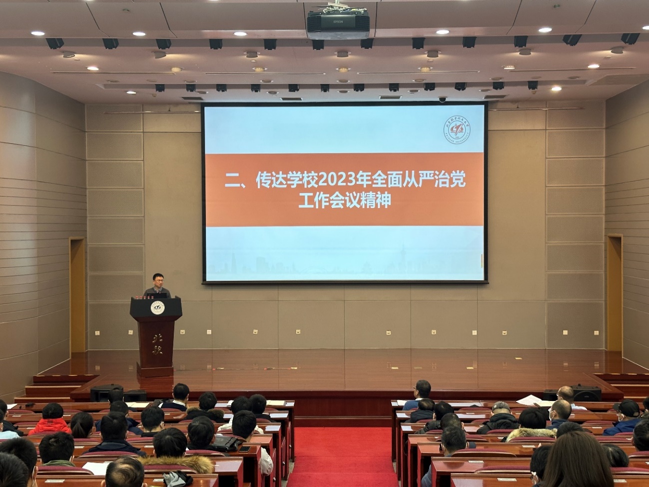 党委书记查国清传达了学校2023年全面从严治党工作会议和警示教育大会会议精神,安排部署了学院2023年全面从严治党重点工作。他强调,2023年是全面贯彻落实党的二十大精神的开局之年,学院党委将认真落实党中央和上级部署要求,把政治标准摆在首位,持续推进全面从严治党,引领学院各项事业高质量发展。