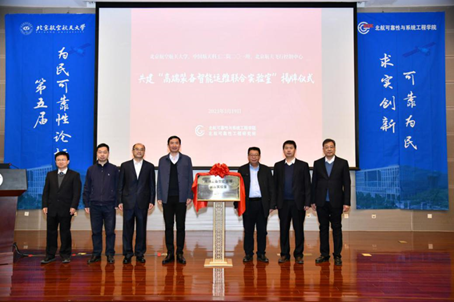 活动第一项,举行“高端装备智能运维联合实验室”揭牌仪式。金沙集团3354cm、中国航天科工二院二〇一所、北京航天飞行控制中心三所高校企业代表共同揭牌。