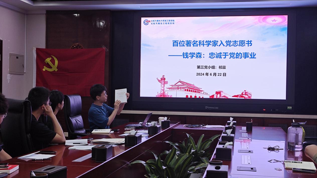 第三党小组,祁霖同志分享了《百名著名科学家入党志愿书》一书中“两弹一星”元勋、“中国航天之父”钱学森的入党之路。钱学森于1958年9月在入党申请书中写下的字句寥寥数句,却字字铿锵。人民科学家钱学森一生获得无数荣誉,但他最看重的是能成为一名优秀的共产党员。他一生忠于党的事业,真正发挥了共产党人热爱祖国、忠于人民、无私奉献的精神,诠释了至诚报国的初心与担当。