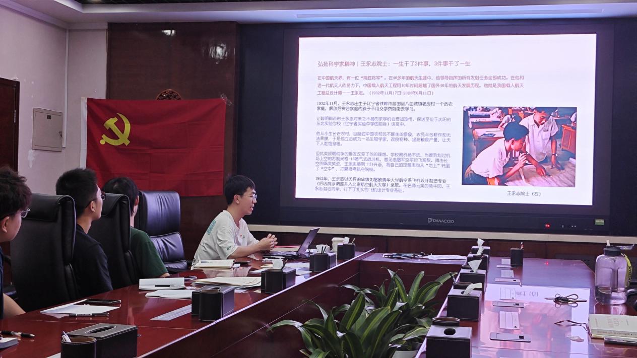 活动中,支部邀请北航研究生宣讲团的副团长刘远博讲师共同参与,与大家分享讨论展览的细节,并开展了一场主题为“初心如磐,奋楫笃行——弘扬科学家精神,走好空天报国长征路”的宣讲课程。刘老师系统讲解了科学家精神的内涵,分享了北航的科学家故事,并鼓励大家向先辈学习,赓续科学家精神,秉持至诚报国的初心,在奉献与钻研中奋楫笃行。